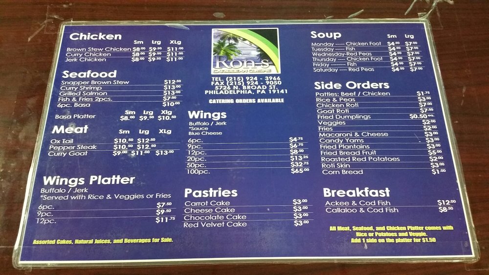 Ron's Caribbean Cuisine Menu